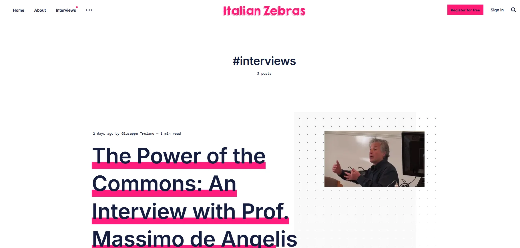 Italian Zebras ist eine Bachelor-Thesis über die italienische Bewegung der Sozialgenossenschaften. Das Projekt dokumentiert und präsentiert neun italienische Sozialkooperativen durch Interviews, Fallstudien und visuelle Inhalte. Es zielt darauf ab, alternative Geschäftsmodelle zu zeigen, die Gewinn und sozialen Zweck vereinbaren. Die Website dient als Plattform für Kreative und Professionals, um sich mit nachhaltigen Unternehmensstrukturen auseinanderzusetzen und Netzwerke zu bilden.
